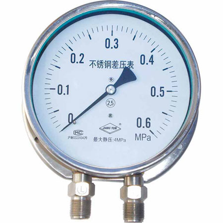 儀表的工作原理:基于感壓元件采用兩只具有相同剛度的波紋管,因此在同一被測介質(zhì)下迫使其產(chǎn)生相同的集中力分別作用于活動支架上,由于彈簧片兩側(cè)在等力矩作用下不產(chǎn)生擾度,故支架還處于原始位置,這樣齒輪傳動機構(gòu)也不動作,使指針仍指在零位。